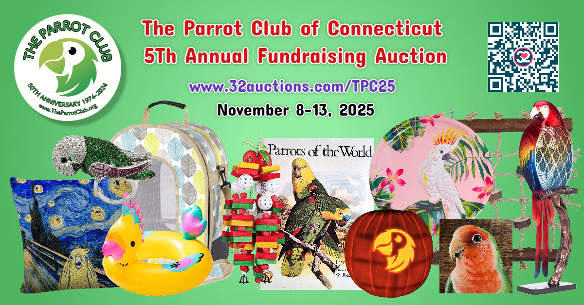 The Parrot Club is a non-profit organization founded in 1974 by a group of people interested in spreading the fun and enjoyment of exotic birds. The Parrot Club meets mostly online over Zoom, so we welcome people from around the world to join us! We do have occasional social events in person. Most meetings are recorded and posted to our YouTube channel, though some are available to members only. Check out our past programs.